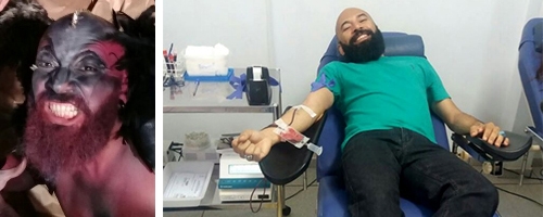 Depois de ter feito o papel do diabo, que vai tentar Jesus Cristo, no "Auto da Paixão", o vereador Professor Cícero se redimiu nesta segunda-feira. É dia de seu aniversário (39 anos) e, pra comemorar, foi doar sangue no Hemonúcleo. Portanto, depois da “maldade”, a boa ação.