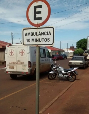 “Vaga para ambulância ocupada por moto e carro em frente o posto 24 horas. A ambulância tem de ficar parada no meio da rua...”