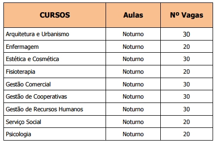 São 220 vagas em nove cursos.