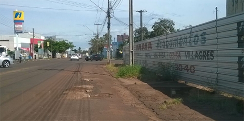 “Na saída para Maringá, tapumes obrigam pedestres andarem na rodovia, na saída para Maringá”.