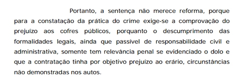 Para o TJ, não houve prejuízo ao município e, portanto, sem crime.