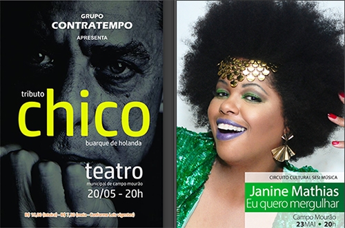 Tem Chico Buarque neste sábado (20h) no Teatro Municipal de Campo Mourão. Não é o cantor em pessoa, infelizmente. O “Tributo a Chico Buarque de Holanda” é uma homenagem a um dos gênios da música brasileira. A apresentação é do grupo Contratempo e o ingresso custa R$ 15 (R$ 7,50 para quem paga meia).