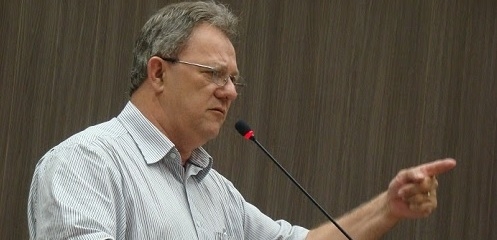 Edson Battilani (PPS), presidente da Câmara de Campo Mourão e servidor aposentado do IAP, sobe a situação do Escritório Regional do órgão; durante sessão da Câmara, terça-feira.