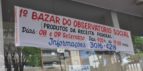 Acontece nesta quarta-feira, até às 17h, a entrega de senhas para quem quiser participar do 1º Bazar do Observatório Social. Interessados devem procurar a antiga Agência do Trabalhador, na rua Santa Catarina. A venda das mercadorias doadas pela Receita Federal será na sexta e sábado, das 9h às 19h.