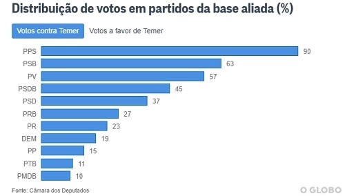 Foi o maior índice de infidelidade a Temer (90%), já que o partido apóia o governo, com direito a Ministério da Defesa e tudo.