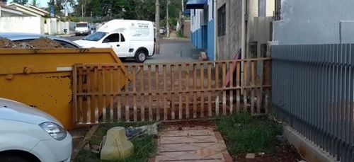 Na rua Francisco Albuquerque, perto da Secretaria Municipal de Saúde, uma cerquinha impede a passagem de pedestres.