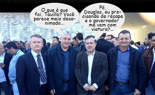 Olha aí mais um clic da semana passada, quando o governador Beto Richa entregou viaturas policias para vários municípios do Estado. O secretário de Estado Douglas Fabrício (Esporte e Turismo) aproveitou para uma pose ao lado dos prefeitos Ismael Dezanoski (Janiópolis), Taullo Tezelli (Campo Mourão) e Pedro Coelho (Goioerê).
