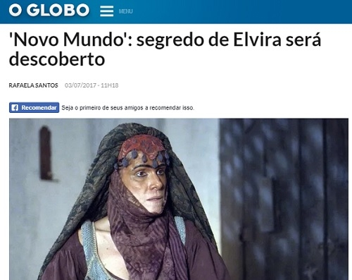 Olha notícia que foi destaque nesta segunda-feira no jornal O Globo - "O segredo de Elvira será descoberto". A revelação é da colunista Patrícia Kogut. Mas calma. Não é a vereadora Elvira Schen, de Campo Mourão, não. Elvira, no caso, é a personagem de Ingrid Guimarães na novela "Novo Mundo", da Globo.