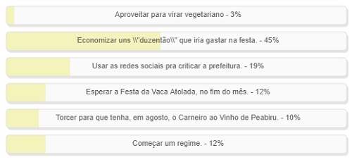 No terceiro lugar houve empate: 12% vão esperar a Vaca Atolada, em Boa Esperança, e 12% aproveitar para inicar um regime.
