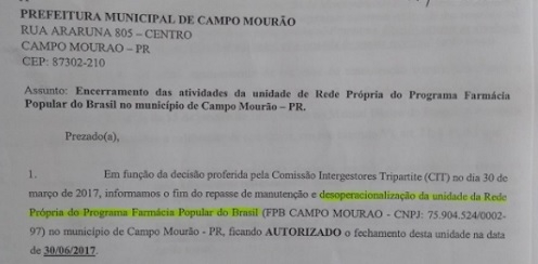 A Farmácia Popular criada no governo Lula vai fechar as portas em Campo Mourão nesta sexta-feira.