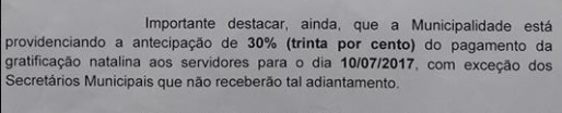 O documento informa que a antecipação não será dada aos secretários municipais.