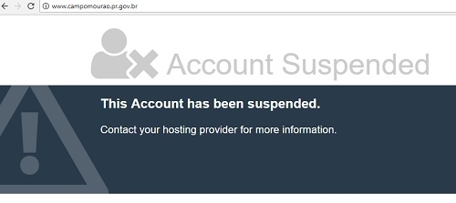 Desde sábado quem acessa o site da prefeitura de Campo Mourão dá de cara com essa mensagem aí. O endereço está suspenso. No início da semana a prefeitura informou que o site ficará "indisponivel temporariamente". "As alterações se devem à mudança de sistema de serviço de hospedagem", explicou a divulgação oficial. Enquanto isso é possível acessar o Portal do Cidadão - campomourao.atende.net .