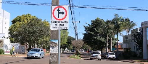 A prefeitura informou nesta quarta-feira que iniciou a coloção de 52 placas sobre a proibição do caminhões acima de 10 toneladas na área central. O investimento é de R$ 9,6 mil. As proibição vale para o quadrilátero entre as avenidas Jorge Walter e João Bento e as ruas Araruna e Interventor Manoel Ribas, como prevê lei municipal de 2012. E se acima de 10 toneladas não pode, imagine essas carretas bitrens que volta e meia cortam o centro...