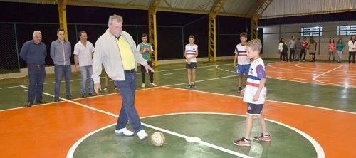 O que é isso? O prefeito de Ubiratã, Baco Duarte, jogando futsal com a criaançada? É quase isso. Foi só o pontapé inicial durante a reinauguração da quadra de esportes do bairro Josefina I. A prefeitura lançou no local a primeira "comissão de esporte". Ela é formada por moradores da comunidade, que terão a missão de representar o bairro, fiscalizar, cuidar e zelar pela preservação das praças esportivas. Viu só, não bastar ser morador, tem de participar...