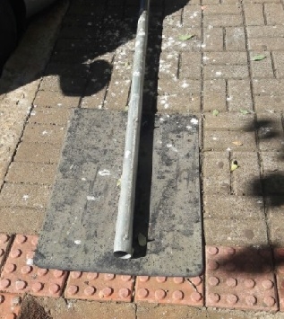 "Placa destruída semana passada, ao lado do Bradesco, na rua Harrison José Borges. A placa é sobre vaga especial".