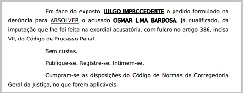 A sentença foi dada pela juíza substituta Mayra dos Santos Zavattaro, que considerou as provas confusas e frágeis.