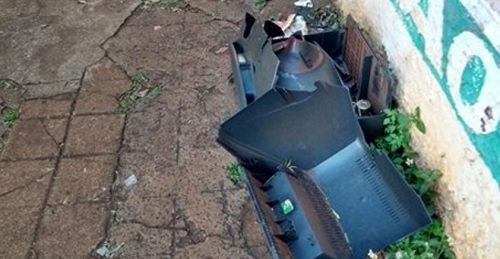 Aparelho de televisão jogado na calçada da av. Goioerê, esquina com rua Mato Grosso.