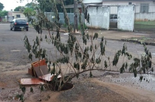 Bueiro aberto no meio da rua da Glória, perto do colégio Dom Bosco, foi "reflorestado" em protesto de moradores. A árvore foi plantada no inicio da semana.
