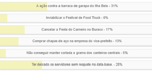 Venceu a alternativa "A ação contra a barraca de garapa do Ilha Bela", com 31% dos votos.