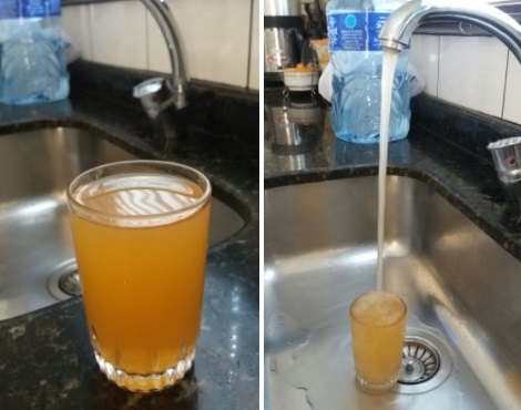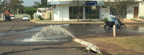 "Cena desta terça-feira por volta das 13h, no jardim Albuquerque (é uma das esquinas da av. Armelindo Trombini). A água que sobrou jorrando pela calçada faltou nas torneiras do bairro".