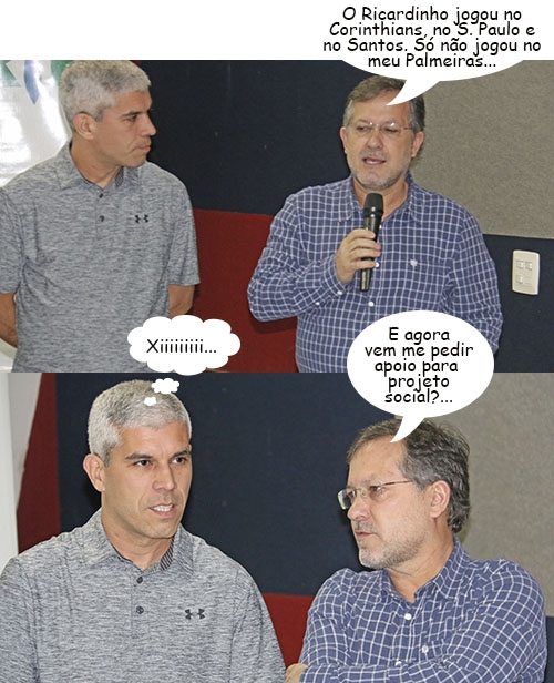 Os cliques são desta sexta-feira, quando o ex-craque Ricardinho apresentou em Campo Mourão o projeto "Maestro da Bola". Foi no Centro da Juventude. O prefeito Tauillo Tezelli participou. Ricardinho, aliás, participa neste sábado de jogo de futebol que reúne outros ex-jogadores. Será às 15h, no estádio Roberto Brzezinski.