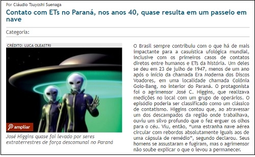 Passou batido, mas completou 70 anos em julho o primeiro relato de seres extraterrestres vistos no Brasil.