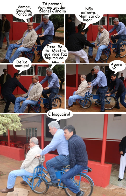 O distrito de Piquirivaí completou 51 anos neste sábado. A solenidade cívica que marcou a data foi na sexta-feira. Mas nem só de cerimônias viveram as autoridades que foram prestigiar o evento. O secretário de Estado Douglas Fabrício, o vice-prefeito Beto Voidelo e o secretário municipal Cristiano Calixto aproveitaram para dar uma voltinha de bicicleta de carga. O vereador Sidnei Jardim deu uma mãozinha no passeio.