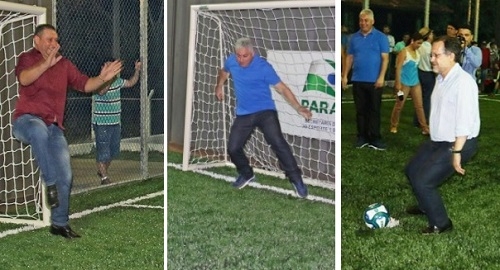 Os cliques são de quinta-feira, durante a inauguração da arena multiuso no conjunto Parigot de Souza. Os políticos não se aguentaram sem bater uma bolinha. Agora, responda rápido: quem está mais desajeitado? O vereador Tucano de goleiro? O secretário de Estado Douglas Fabrício no gol? Ou o prefeito Tauillo Tezelli na hora do chute?...