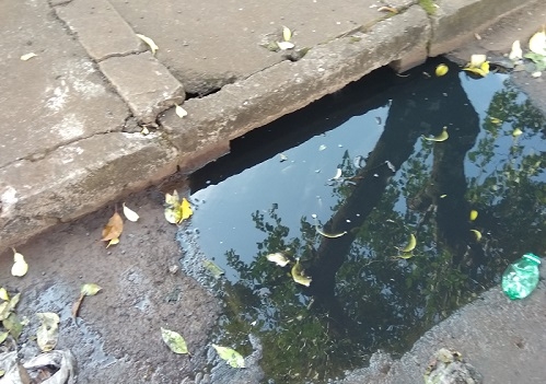 "Olha a situação em plena avenida principal no conjunto Parigot de Souza, próximo ao mercado Nazário, há mais de ano. E já foram feitas várias reclamações junto à prefeitura e agentes da dengue, exalando um mau cheiro horrível e apresentado risco de dengue".