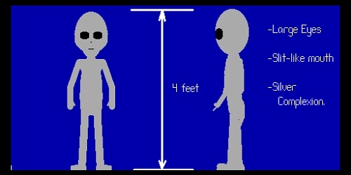 "Notei ainda que sua aparência estranha era devida aos olhos bem redondos, grandes e sem sobrancelhas, tendo, no entanto, cílios e a calva bem pronunciada. Não tinham barba e suas cabeças eram grandes e redondas. Suas pernas pareciam mais compridas que as proporções que conhecemos. E quanto à altura, tinham uns 30 cm a mais do que eu, que tenho 1,8 m. O mais interessante é que pareciam irmãos gêmeos".