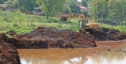 Nos últimos dias a prefeitura tem trabalhado no desassoreamento do rio que passa pelo parque e forma o lago.