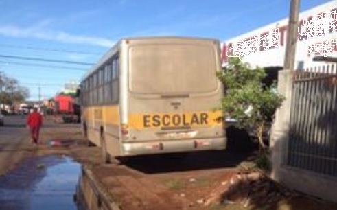"Na av. Guilherme de Paula Xavier busão de prefeitura da região estacionado sobre a calçada".