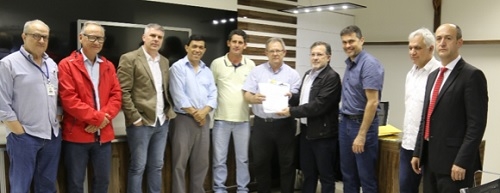 O prefeito Tauillo Tezelli e cinco secretários levaram nesta sexta-feira à Câmara o projeto de orçamento para 2018.