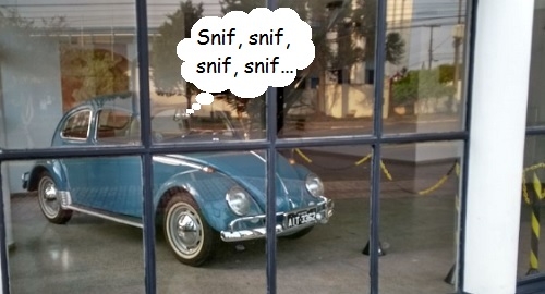 Desfile de aniversário de Campo Mourão, a cidade fazendo 70 anos, o histórico Fusca do ex-prefeito Milton Luiz Pereira não deveria ter participado? O Fusquinha, coitado, ficou "preso" no Teatro Municipal, onde está desde abril, sem uma faixa, uma placa, nem nada. Quem não sabe da história não sabe o que o VW Sedan está fazendo ali.
