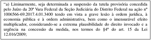 O recurso foi obtido pela União, que alegou "grave lesão à ordem jurídica, à economia pública e à ordem administrativa".