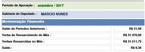 Saiu o relatório de despesas de setembro dos gabinetes dos 54 deputados estaduais. Cada um tem R$ 31.470 por mês para bancar as despesas. O mourãoense Márcio Nunes fechou o período com gastos de R$ 31,5 mil. Ele tinha sobras de agosto, por isso pode usar um pouquinho mais. O gabinete de Nunes encerrou setembro com R$ 9,36 em caixa.