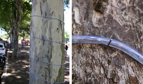 A prefeitura de Campo Mourão está usando pregos para fixar a decoração nataliana nas árvoras das praças São José e Getúlio Vargas. Pode ser preciosismo, mas isso é proibido por lei municipal. O Código de Arborização foi atualizado em agosto e permite luzes natalinas nas árvores a partir da última semana de novembro, mas veda a utilização de "qualquer material metálico para fixação das lâmpadas e ornamentos". Hummmmmm...