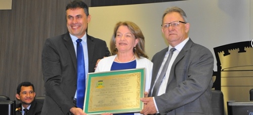 Teve sessão solene na Câmara de Campo Mourão, nesta sexta-feira, para entrega do título de Cidadania Honorária à empresária Ivone Malho, da Paraná Diesel. A homenagem foi iniciativa do vereador Edson Battilani, que entregou o título junto com o vice-prefeito Beto Voidelo.