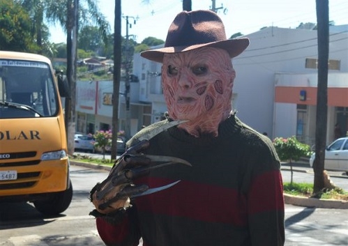 Sim, é ele mesmo, o vilão de "A hora do pesadelo". Mas calma, que em Barbosa Ferraz o terrível personagem estava bem "Fredinho paz e amor". Ele fez parte de um desfile do projeto "24 Horas na Escola", do colégio estadual Machado de Assis, que teve como tema "O cinema na escola".