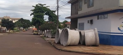 "Esses tubos, que é para fazer o sistema de galerias pluviais para escoar a água no período de chuva intensa, já estão há um mês na calçada, atrapalhando a passagem de pedestres, e até o momento ninguém voltou para iniciar as obras. Será que teremos que esperar mais uma inundação e mais alguém entrar com pedido de indenização para que as obras sejam realizadas?"
