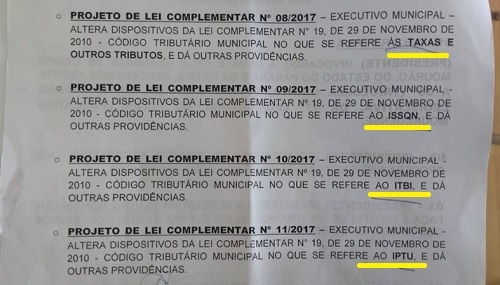 Um mexe com taxas, um com ISSQN, um com ITBI e outro com IPTU.