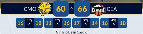 Nesta seguna-feira a derrota foi para o Basquete Cearense: 66 a 60.