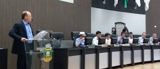 Edson Battilani (PPS), presidente da Câmara, ao discursar na sessão solene desta terça-feira.