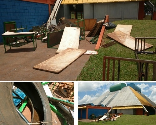 Entulho nos fundos da quadra do Caic. Tem até pneu velho. Com as altas temperaturas e as chuvas, facilita a criação de focos da dengue.
