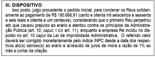 A condenação é por improbidade administrativa.