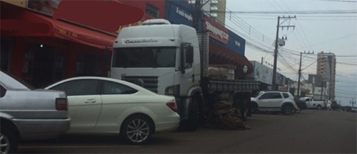 “Já não era mais horário de carga e descarga, mas o caminhão fazia seu serviço numa rua do centro de Campo Mourão”.