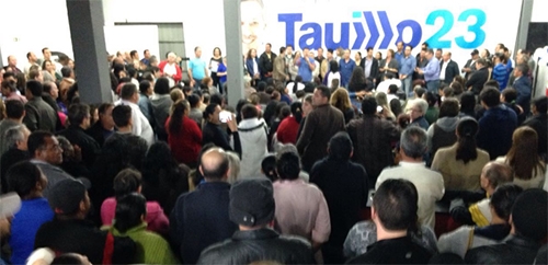Mesmo com muita chuva teve inauguração neste sábado pela manhã do comitê do candidato a prefeito Tauillo Tezelli (PPS). O deputado federal Rubens Bueno participou. A novidade é que o comitê não fica no centro, não. Fica na av. Armelindo Trombini, perto do posto Flex, fundos do conjunto Ilha Bela (antiga Granato Peças).