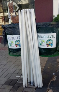 Na av. Manoel Mendes de Camargo, centro de Campo Mourão, lâmpadas fluorescentes, que devem ter descarte especial, são deixadas encostadas em lixeiras.