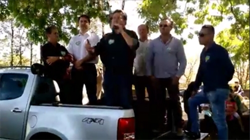 O clic é de São Manoel do Paraná. Não fica na região de Campo Mourão, mas quem aparece discursando é o deputado da terrinha, Márcio Nunes. Ele esteve por lá em campanha para um candidato a prefeito. Repare que o “palanque” é a caçamba de uma camionete. Ah, melhor caçamba que camburão...