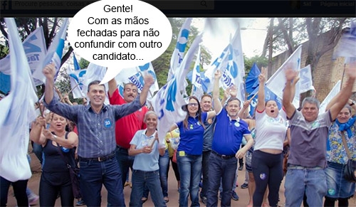 O clic é do fim de semana, quando o candidato a prefeito Tauillo Tezellli (PPS) promoveu passeata pela cidade. O candidato a vice-prefeito, Beto Voidelo, é claro, foi junto. Repare que Voidelo ergue os braços e mantém as mãos fechadas. Ah, digamos que já tem candidato demais mostrando as mãos por aí...